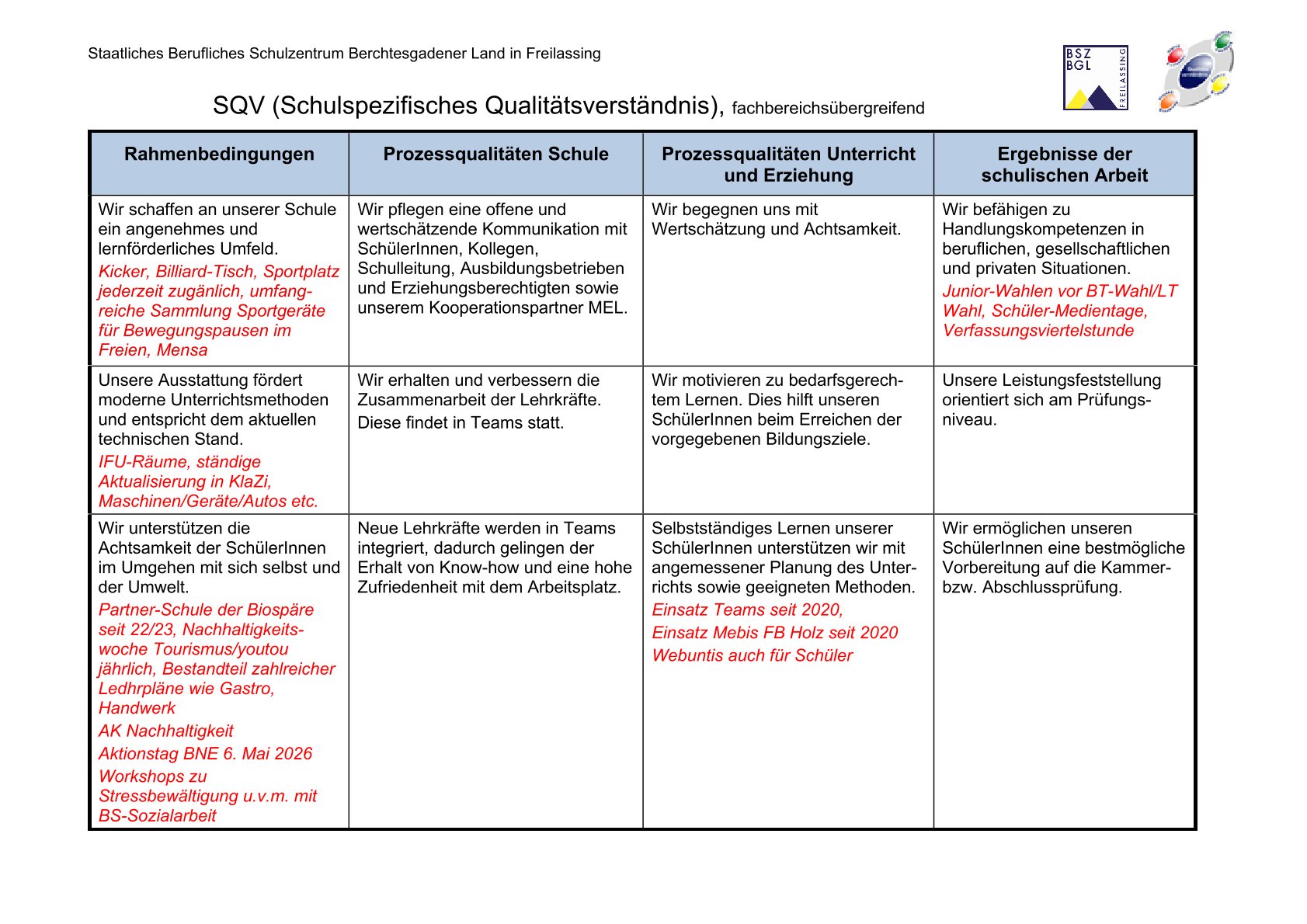 „Die Entwicklung eines schulspezifischen Qualitätsverständnisses (SQV) ist für eine systematische schulinterne Qualitätsentwicklung unentbehrlich.
